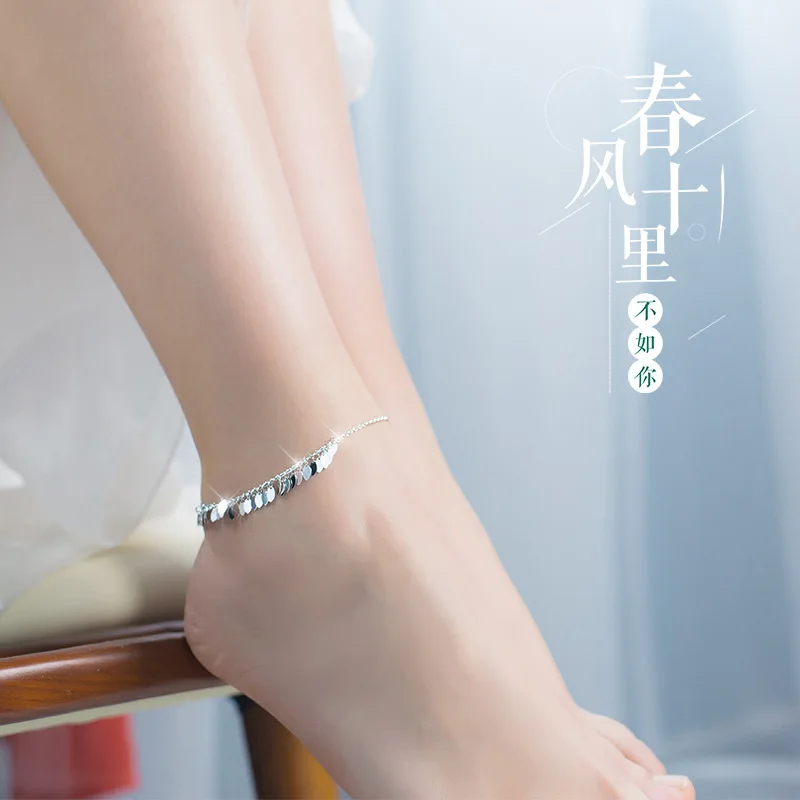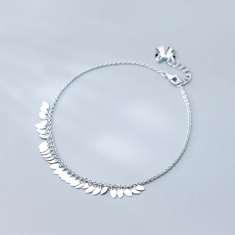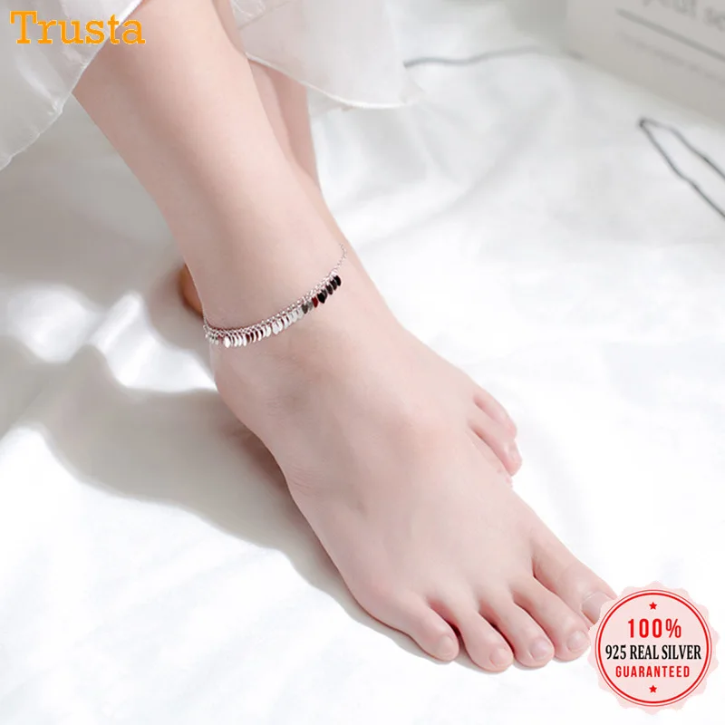 Женский ножной браслет Trustdavis, из серебра 100% пробы с кисточкой в виде овальных листьев, 925 пробы, ювелирные изделия из серебра 925 пробы, DA236