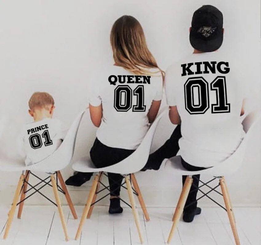 1 шт., футболка с короткими рукавами для всей семьи, одежда для папы, мамы и детей 01, одинаковые комплекты для семьи King Queen Prince