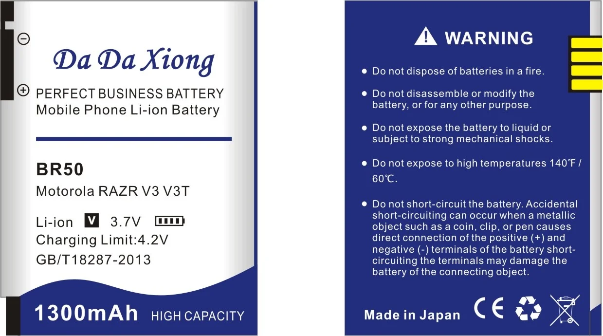 Аккумулятор DaDaXiong BR50, 1300 мА ч, для телефонов Motorola RAZR, V3IM V3, V3i, V3c, V3E, V3m, V3T, V3Z, PEBL U6, Prolife 300, 500