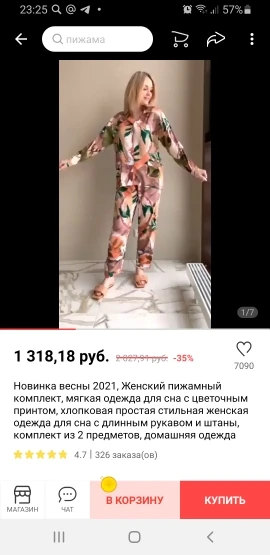 Пижама очень понравилась! Заказала вторую другой расцветки.