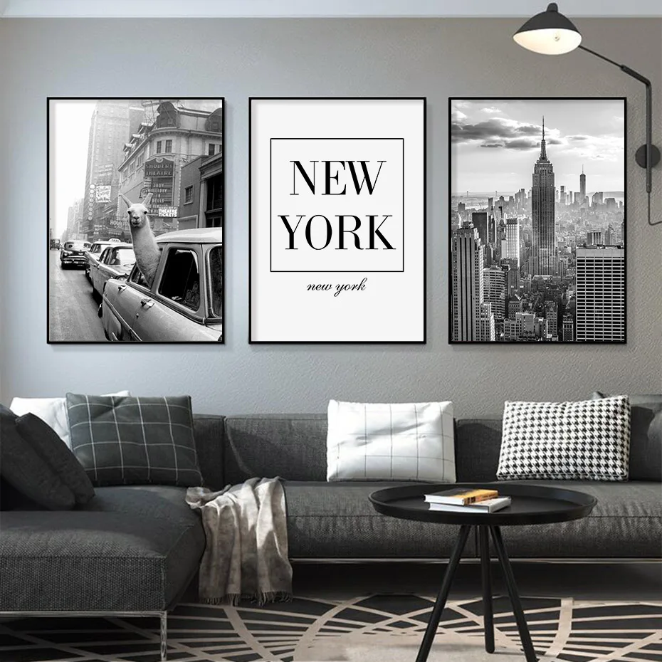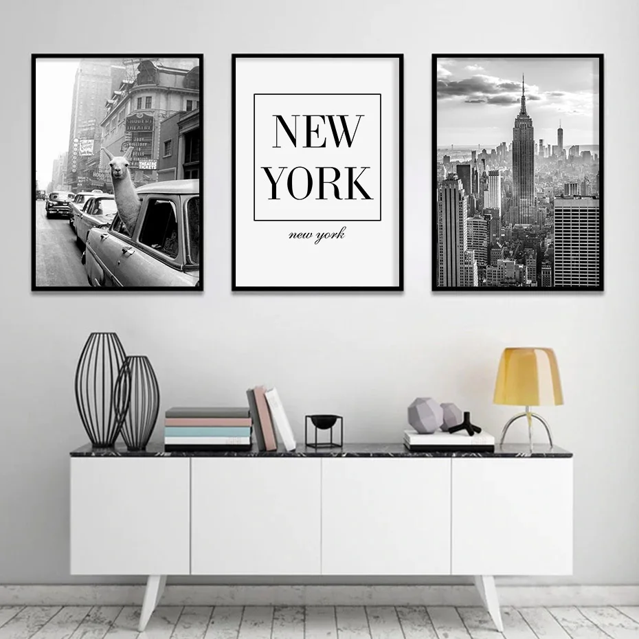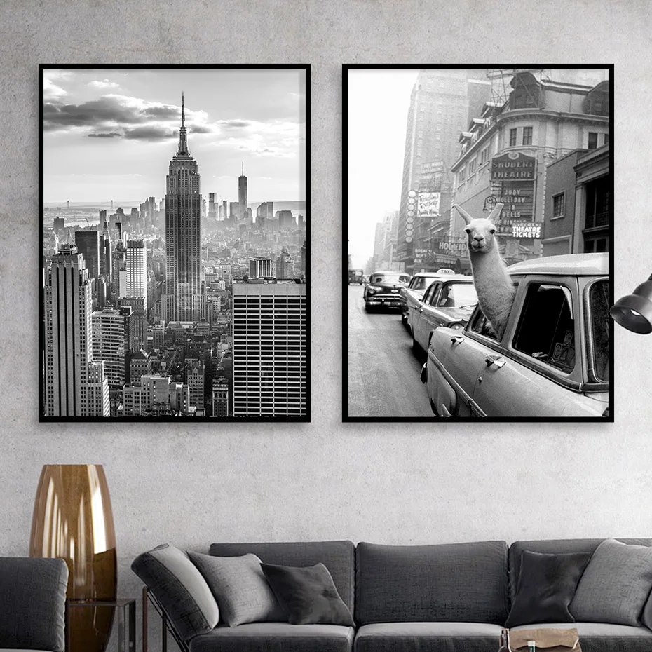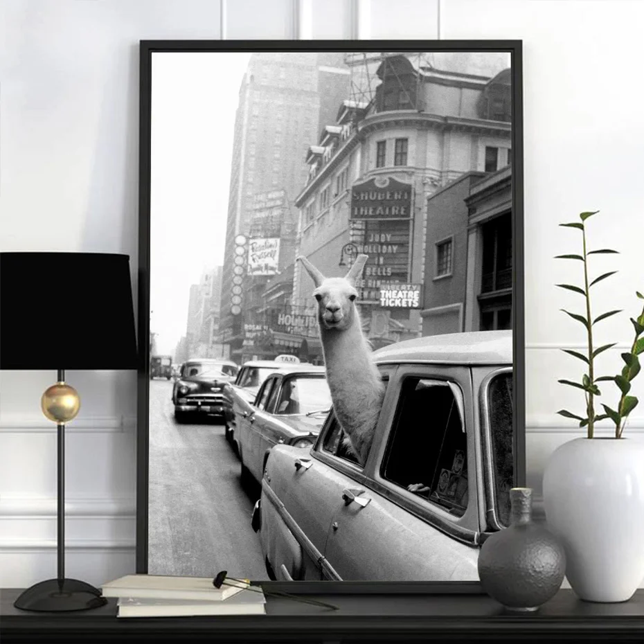 Черный и белый альпака в такси Нью-Йорк холст картины ретро плакат и печать настенные художественные картины в стиле поп для декора гостиной