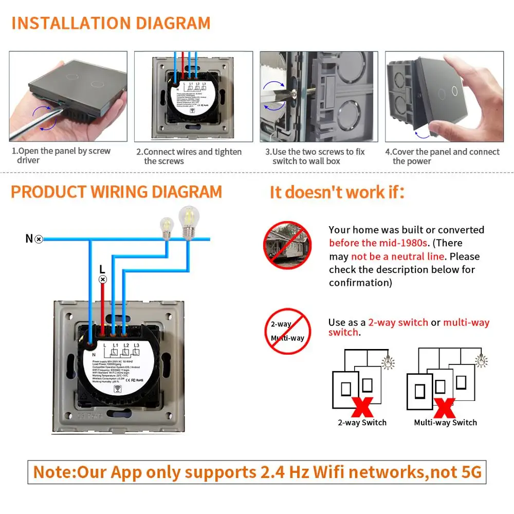 ХарактеристикиWIFI 2 Gang 1 Way Touch Switch