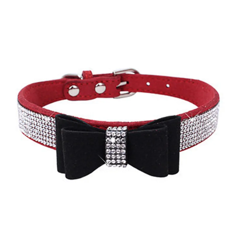 Ошейник Стразы для кошек и собак, кожаный регулируемый ошейник с бантом для маленьких и средних собак, чихуахуа, Мопсов