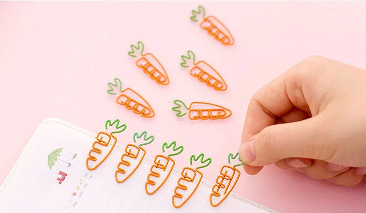 5 шт.лот милые Мультяшные скрепки в виде морковки Kawaii Канцтовары...