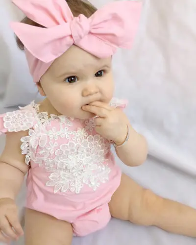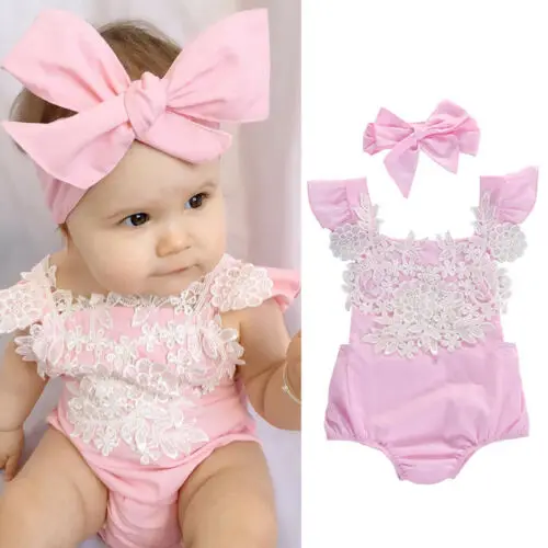 Комбинезон кружевной pudcoco, розовый, с повязкой на голову, для новорожденных, 0-18 месяцев