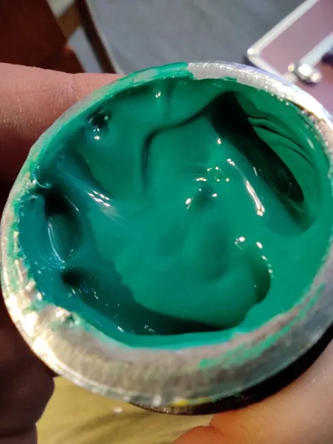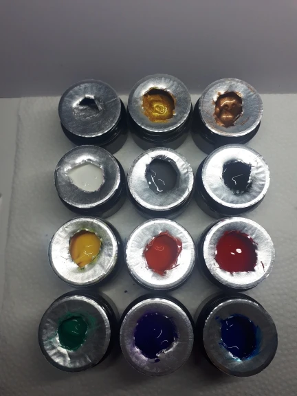 Доставка 2 мес. Баночка запакована защитной плёнкой. Полная. Пигмент белый густой.