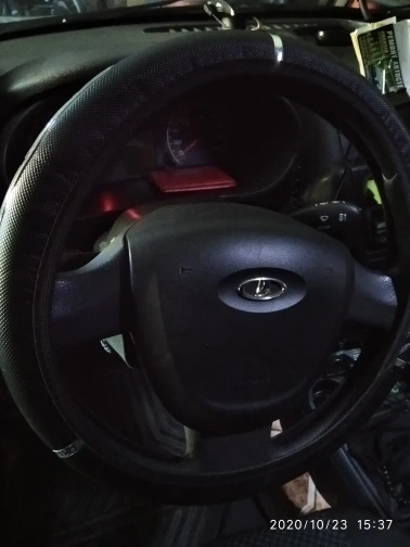 Оплётка классная, советую приобрести. Посмотрим как в оспользовании себя покажет Поверхность ребристая, что хорошо. Не будет рука скользить. Потом отзыв добавлю. Заказывали на Лада Гранта.