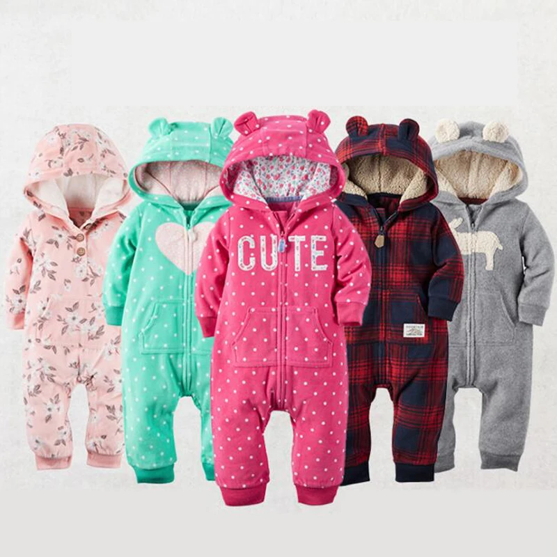Зимние детские комбинезоны флисовая одежда для маленьких девочек комбинезон для новорожденных младенцев толстые Roupas Bebe Новинка 2017 года с капюшоном маленьких мальчико