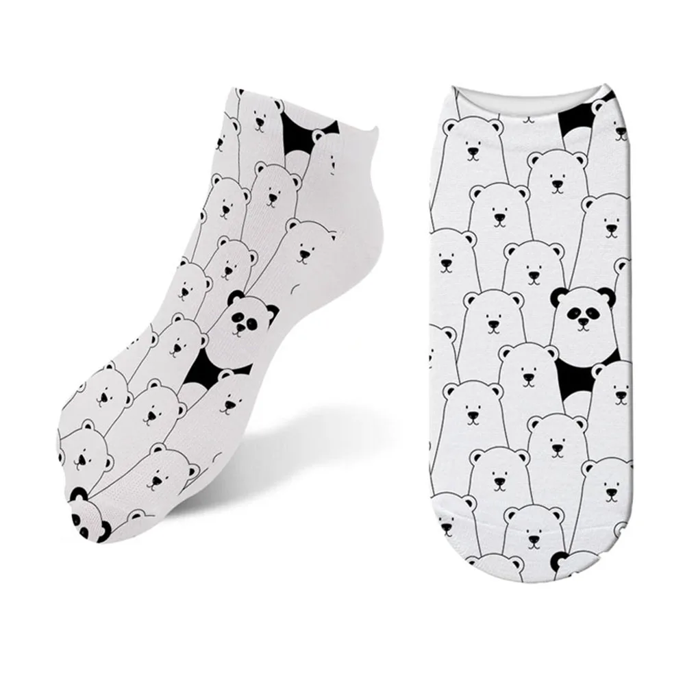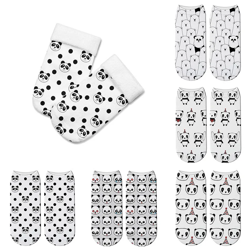 Модные женские носки с 3D принтом панды, новые милые носки до щиколотки унисекс с низким вырезом, мягкие хлопковые повседневные летние женские носки с мультяшным рисунком