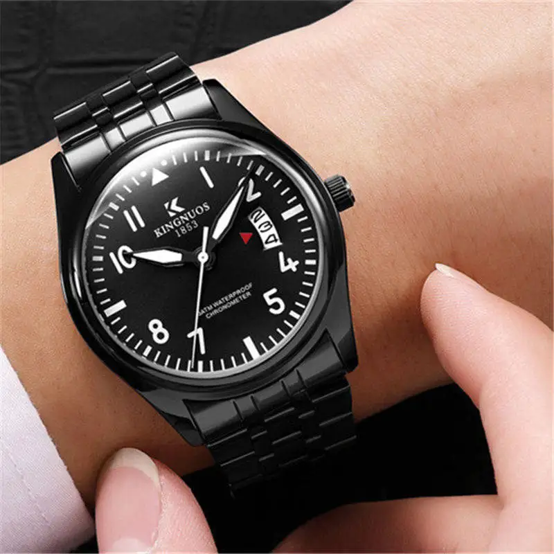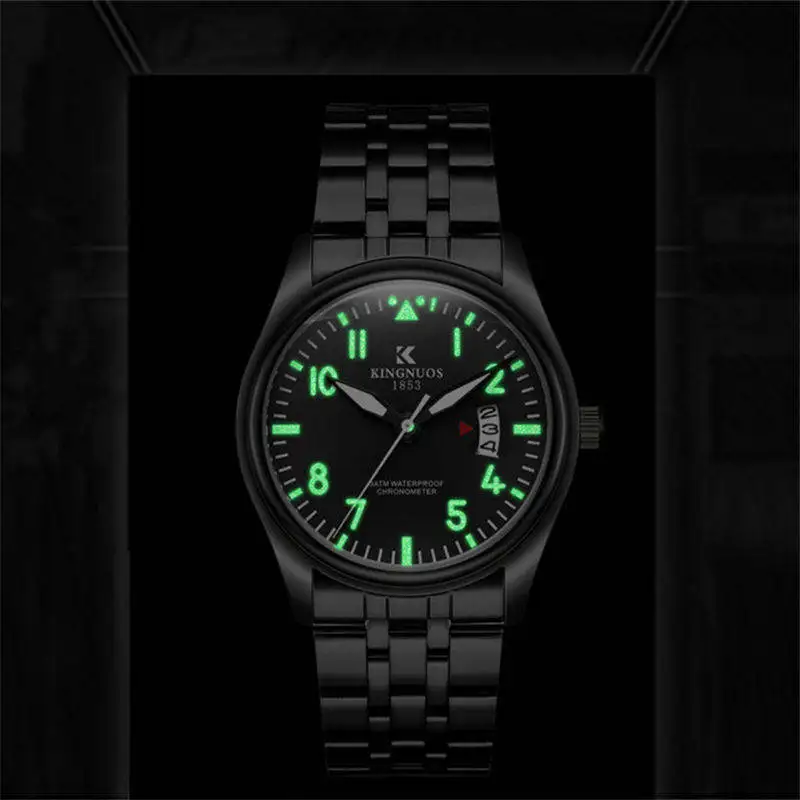 Часы наручные KINGNUOS Мужские кварцевые, люксовые брендовые модные повседневные с сетчатым браслетом из нержавеющей стали