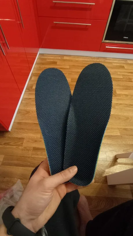 Шли долго. Без отслеживания. Пахнут Китаем. 46 стельки на размер 43-44 без подрезки влезли в натяг. Ощущения не привычные в первый день, как будто на пружинках стельки. Короче качество так себе, материал на орфолайф не похож, посмотрим сколько протянут