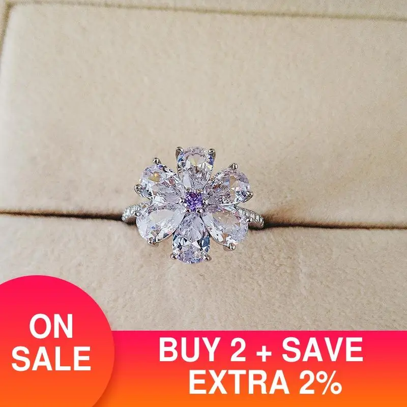 Женское кольцо с белый цветок со стразами, обручальное кольцо с цир...