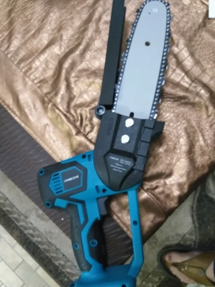 Сама пила на троечку. Аккумулятор приходится вколачивать. Вынимается с большим усилием. Предохранителя пуска цепи нет. Можно отпилить пальцы. При первом пуске сильно воняет и немного дымит электродвигатель. Дыма больше нет. Запах есть. Доставка быстрая. Получил в Санкт-Петербурге через неделю после заказа. Если будет ещё и ветки пилить напишу отдельно.