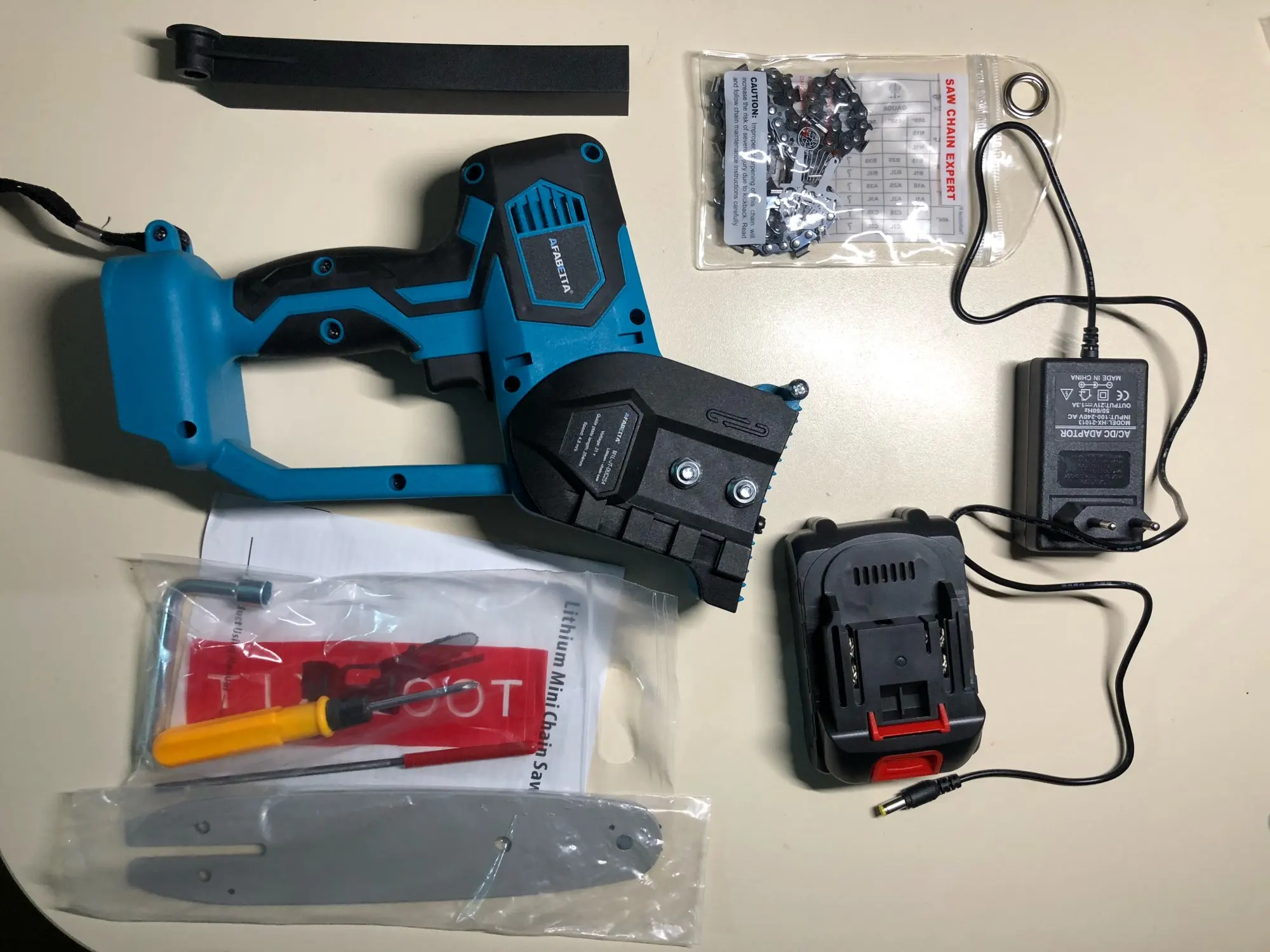 Доставка не долгая, спасибо! Вилка европейская, аккумулятор не болтается... Инструкции нет, то что прислали, это инструкция для болгарки на китайском. Где смазывать редуктор, не нашел, наверное его вообще не смазывают. Но цепь и шестерни смазывать стоит.
