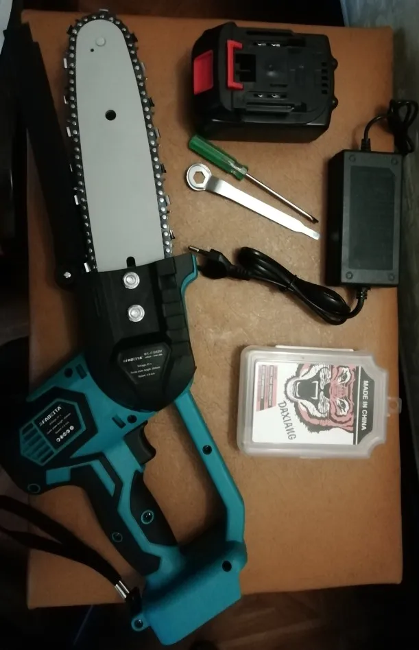 Все пришло быстро и в сохранности. Советую тут покупать. На аккамуляторе нет индикации заряда, зарядное весит +-50гр на 1А. Сразу проверил на улице, пилит без усилий, эту заказ в подарок, теперь себе закажу. Для частного дома, дачи, пикника очень удобна. Всем удачи