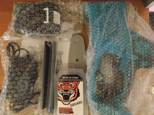 Очень быстрая доставка через почту россии. Трек дали на следующий день. Фактическая отправка из Москвы на следующий рабочий день. Доставка по Москве 1 день. Упакована в 2 слоя пупырки и пакет. Ничего не повредилось. Комплектация полная. Аккумулятор частично заряжен, пилу крутит. Вставляется и снимается туго, но это не критично. Из косяков: прилагаемое зарядное устройство имеет штекер 5,5х2,1, а гнездо в батарее вход 5,5х2,5. Соответственно, в аккумулятор он не влазит. Вилка евро, как и полагается. Заказал переходник 5,5х2,1 на 2,5 за 0,7$ - жду. С продавцом этот вопрос пока что решить не удалось. Из конструктивных недостатков: 1. Отсутствие смазки цепи, нужно будет самостоятельно подмазывать цепь, чтоб не искрила и не перегревалась. 2. Нет предохранительной кнопки запуска, во время переноски можно случайно нажать на включение и отпилить что-нибудь. Цепь 33 звена 8 дюймов продается в Леруа за те же 6$. Батарея подходит Makita 18хх серии 1830, 1840 и т.д.