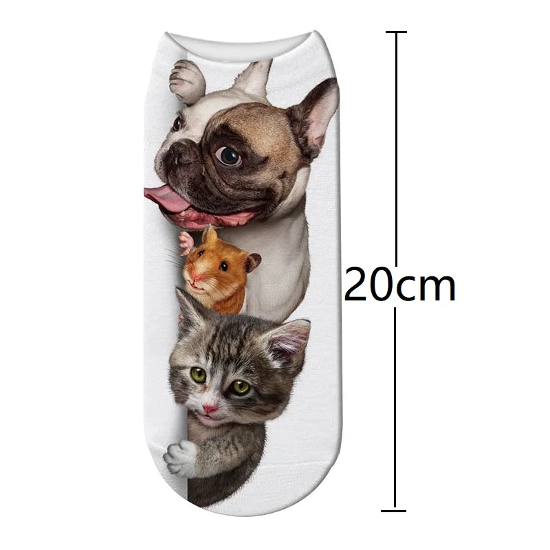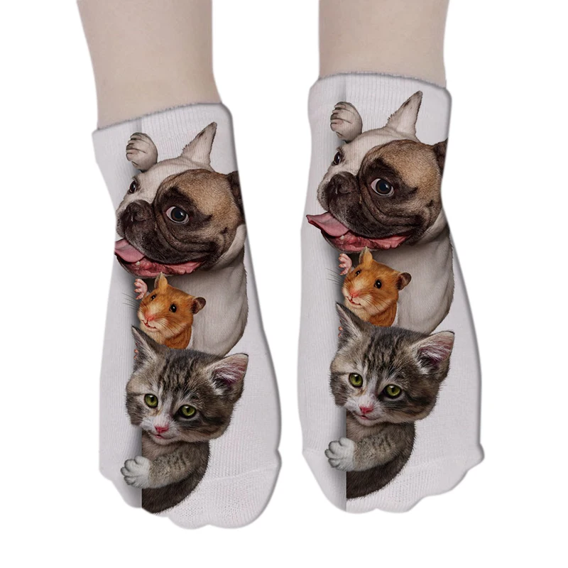 Новые женские хлопковые короткие носки с 3D принтом, Забавные милые спортивные велосипедные модные повседневные Короткие Носки с рисунком кота, собаки