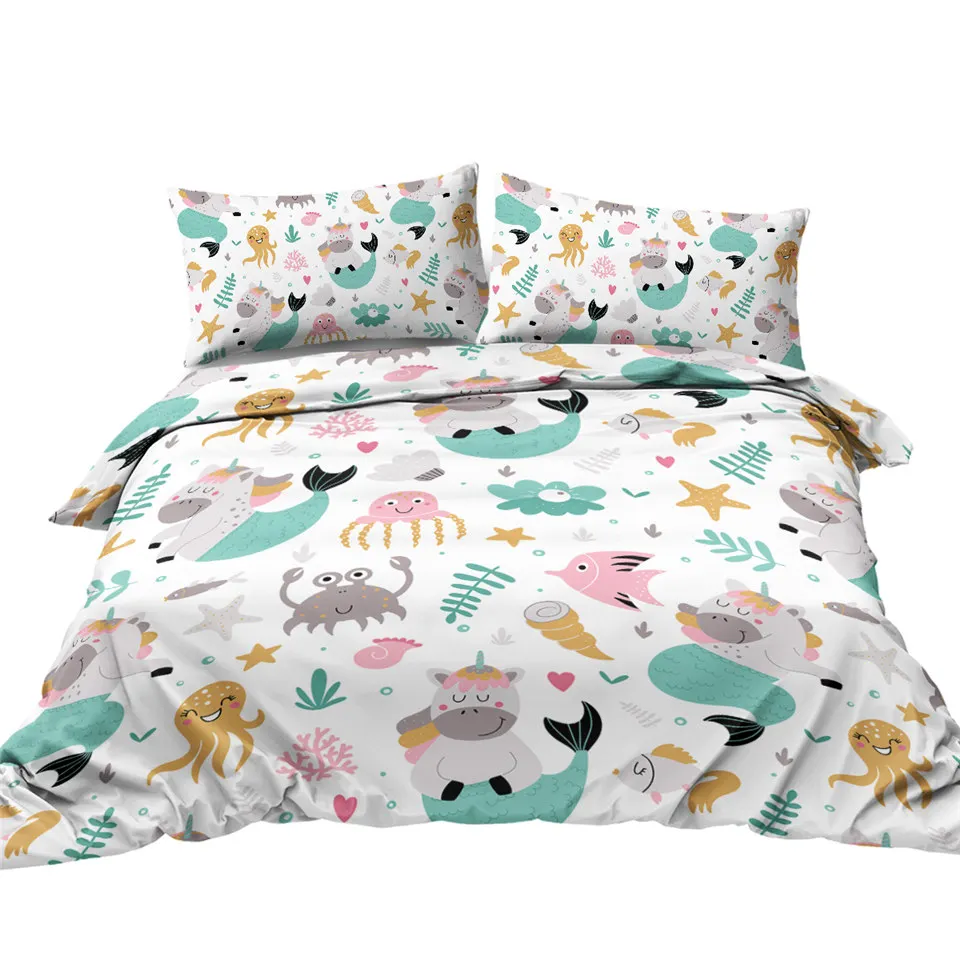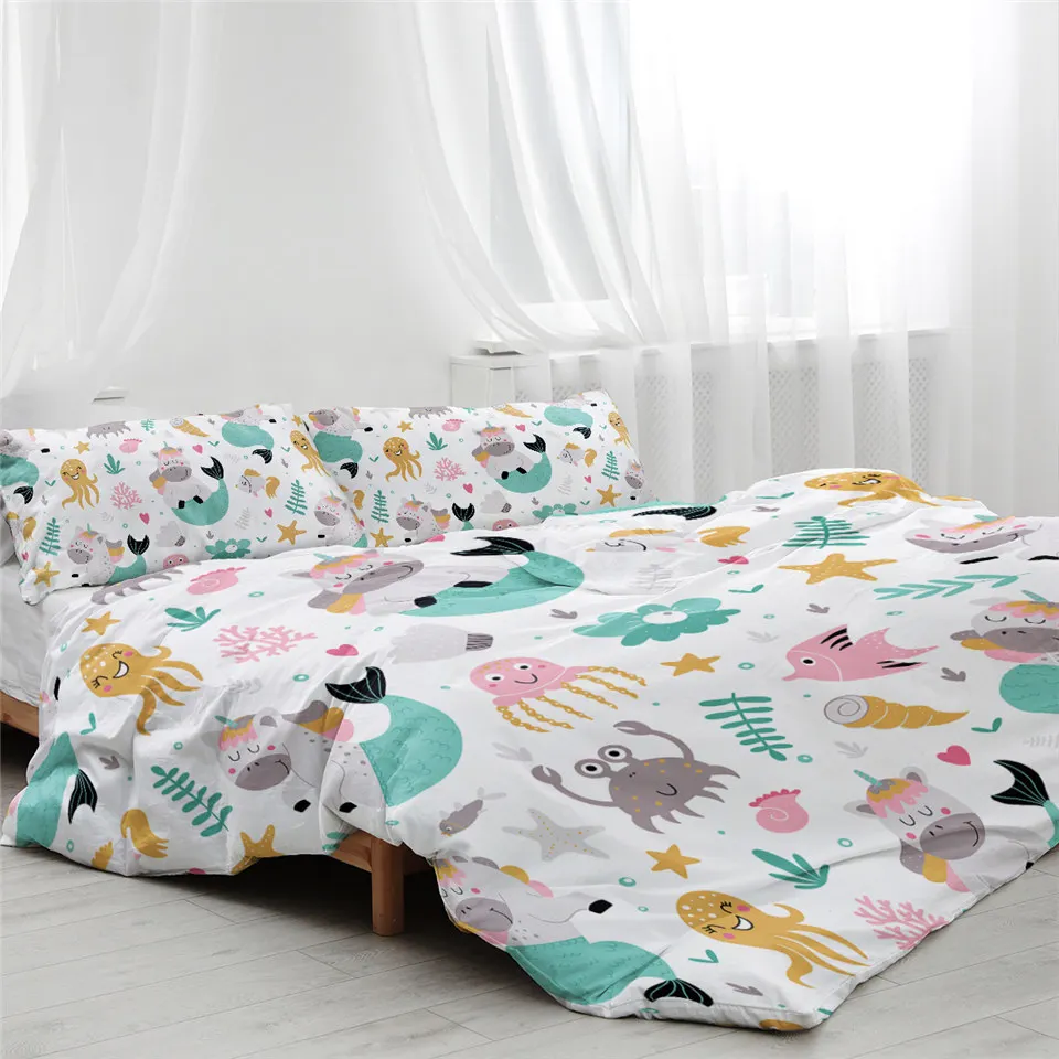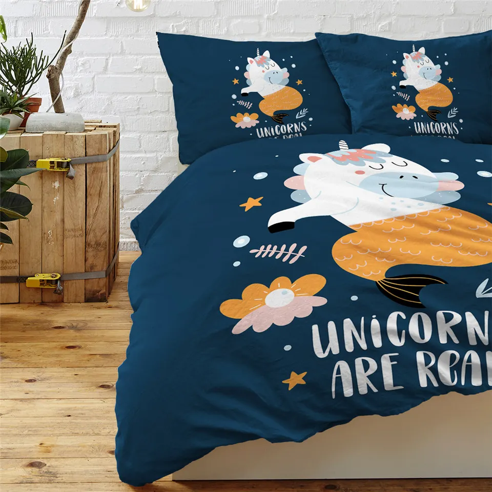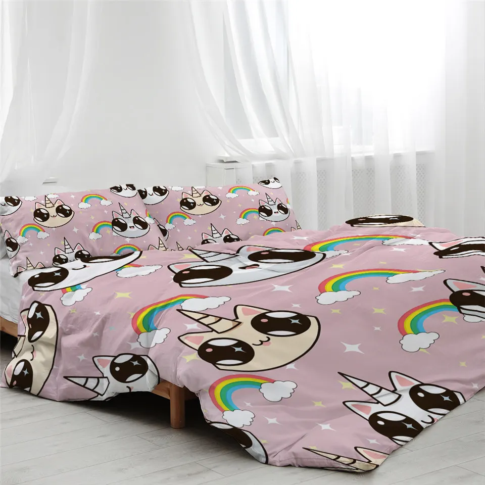Комплект постельного белья для детей с радужными волосами, постельное белье с изображением единорога