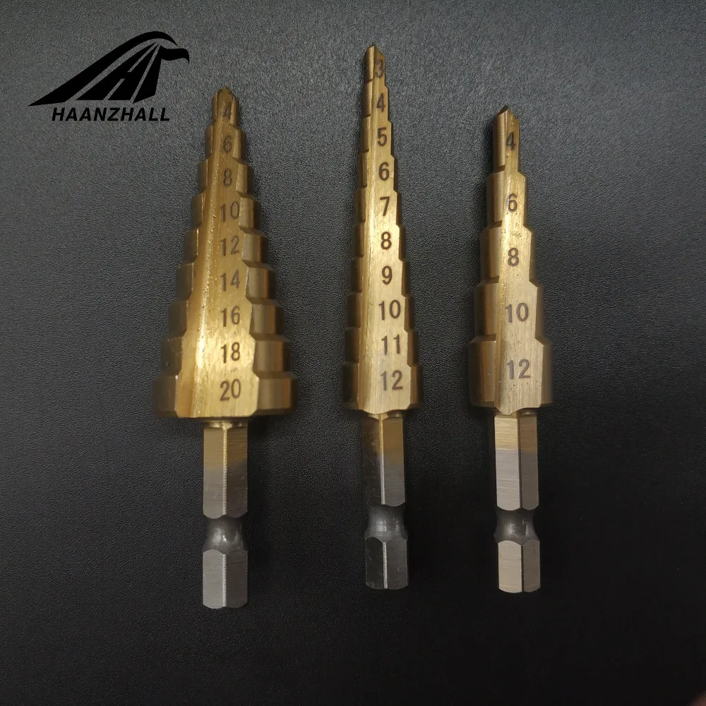 3 шт., титановые ступенчатые сверла из быстрорежущей стали, 3-12 мм, 4-12 мм, 4-20 мм