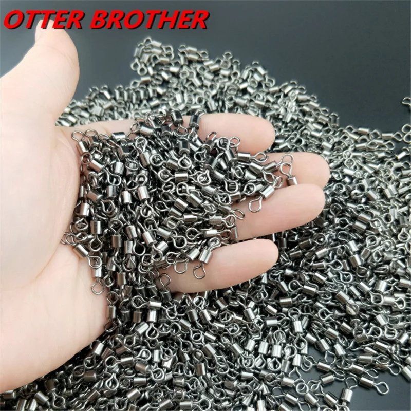 50PCS Fishing Ball Bearing Rolling Swivel Solid Rings 2#4#6#810#12#14# Shape Stainless Steel Connector Lures Fishing Tackle