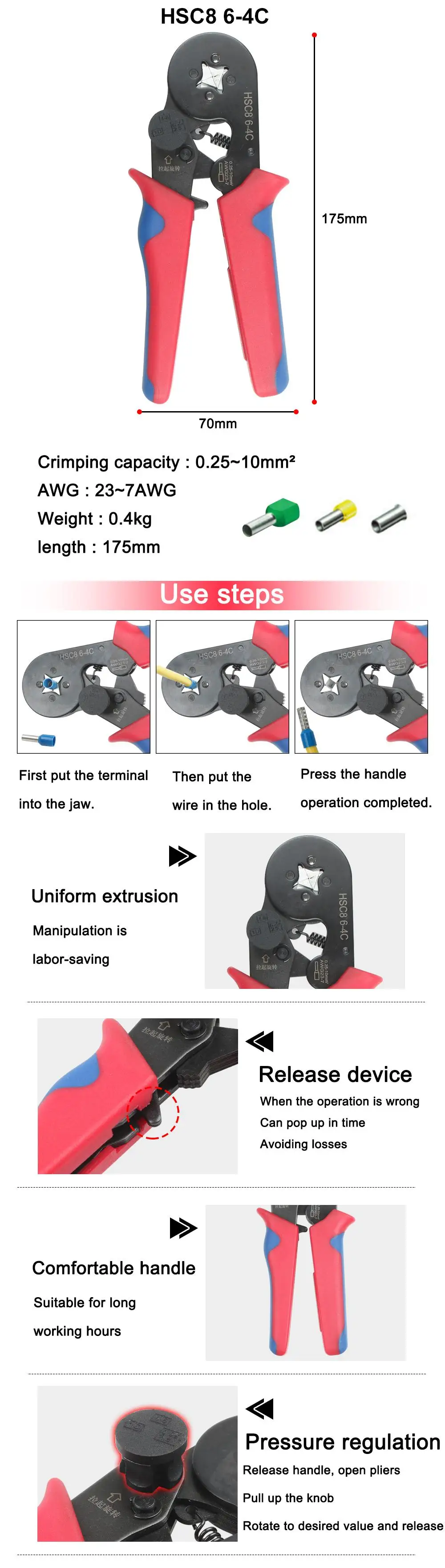 Обжимные мини-клещи HSC8 6-6C HSC8 6-4, саморегулируемые, 0,25-10 мм