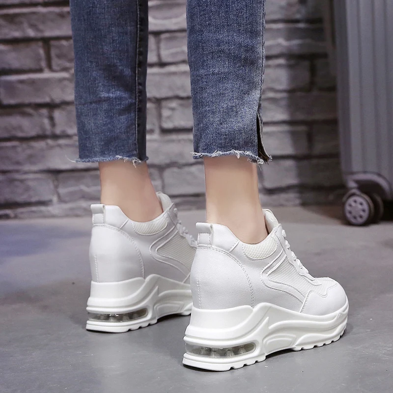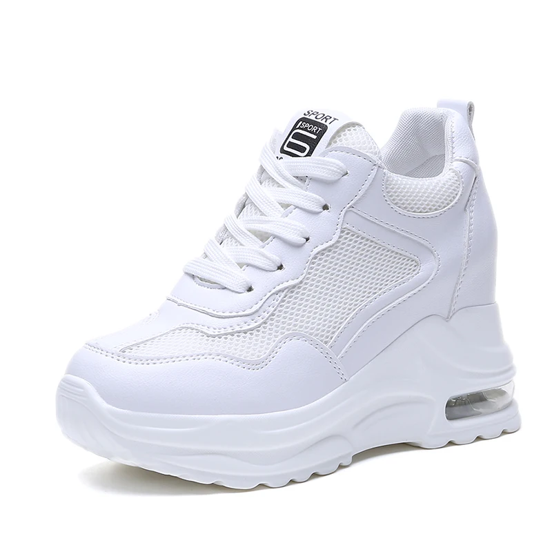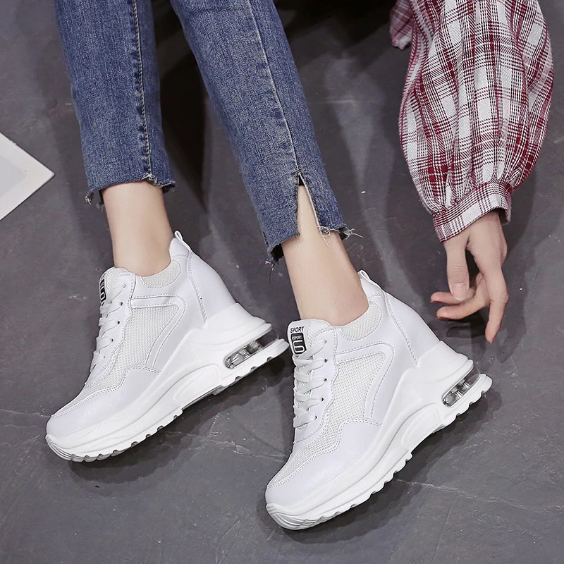 Кроссовки женские сетчатые на платформе, дышащие, танкетка 9 см, повседневные, обувь, увеличивающая рост, белые, лето 2020