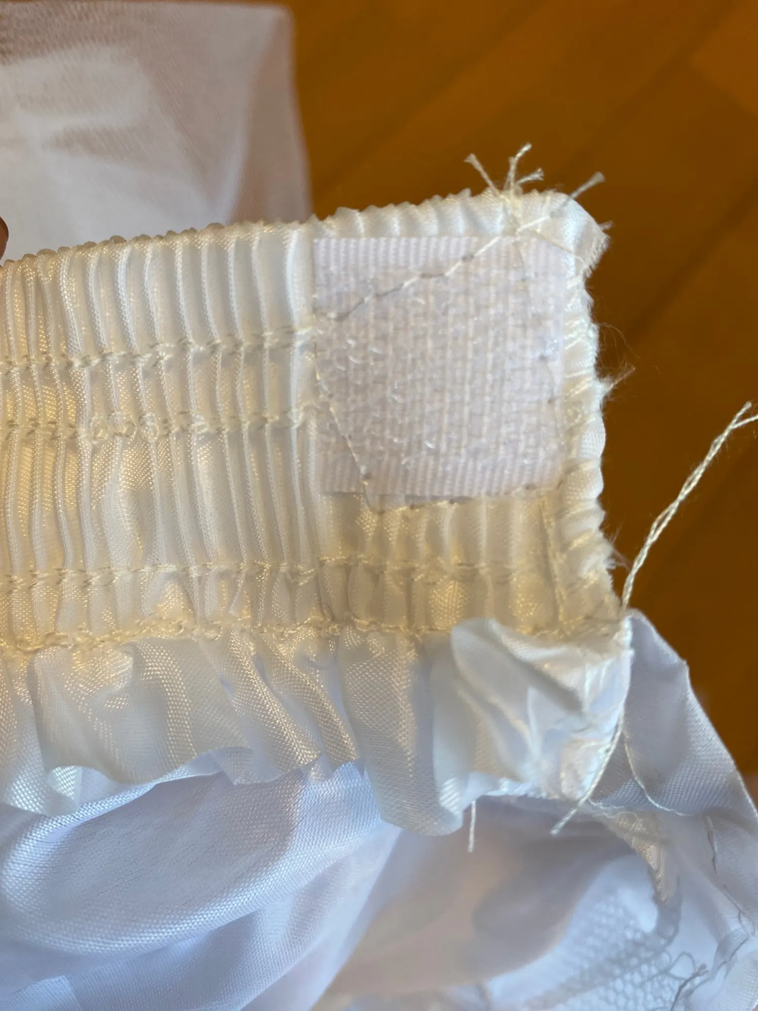 юбка жесткая, края колятся, но зато отлично держит платье. резинка тугая, поэтому на липучку сзади даже не стали застегивать, чтобы не давило. доставка быстрая