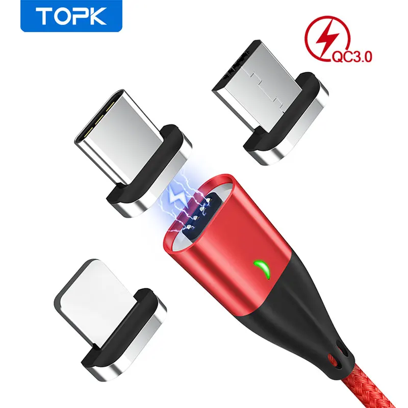Магнитный usb-кабель TOPK QC3.0, кабель для быстрой зарядки типа c usb c для iphone xr x xs Xiaomi redmi note 7 Huawei, 1 м