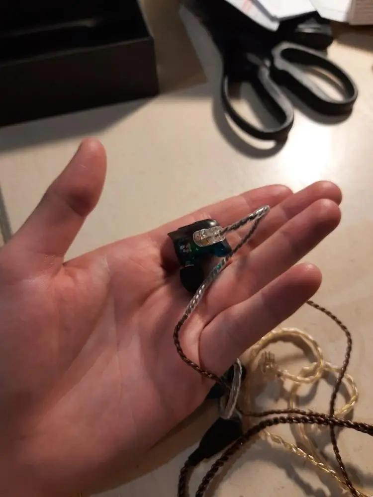 Доставка была на следующий день после оплаты. Доставка займет еще две недели в Украину. Наушники отлично работают. Они сидят на моих ушах довольно комфортно и звук довольно хороший. Коричневый кабель с микрофоном отлично работает. Микрофон на кабеле не работает с телефонами xiaomi (протестирован на K20 и Mix2), но работает с внешним usb-dac. Звук микрофона неплохой, но не такой хороший, как встроенный микрофон в телефонах. Сопротивление кабеля составляет около 0,8 Ом на провод. Таким образом, он имеет ~ 1,5 Ом Полное сопротивление (Заземление + сигнал). KZ "золото-серебро" (желто-белый) кабель гораздо лучше, если сопротивление: всего 0,4 Ом. Но он имеет довольно неприятный запах. Я надеюсь, что он исчезнет со временем.