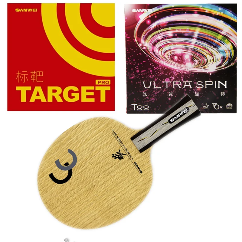 Ракетка для настольного тенниса Sanwei CC 5 + 2 Carbon с ультра спиннингом Sanwei TARGET Pro T88