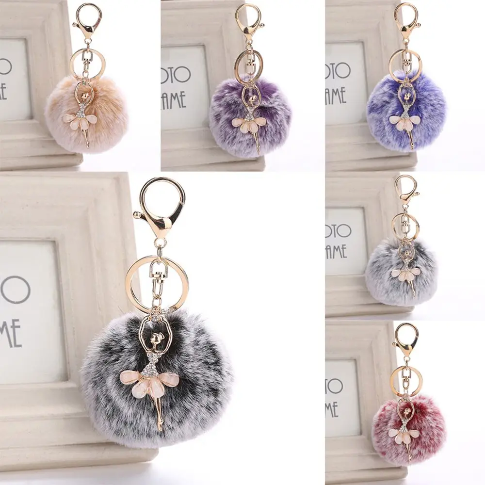 Милый Стразы маленький ангел брелок для автомобильных ключей искусственный мех брелок аксессуары для машины, сумки, ключей, ювелирное изделие, подарок пух брелок