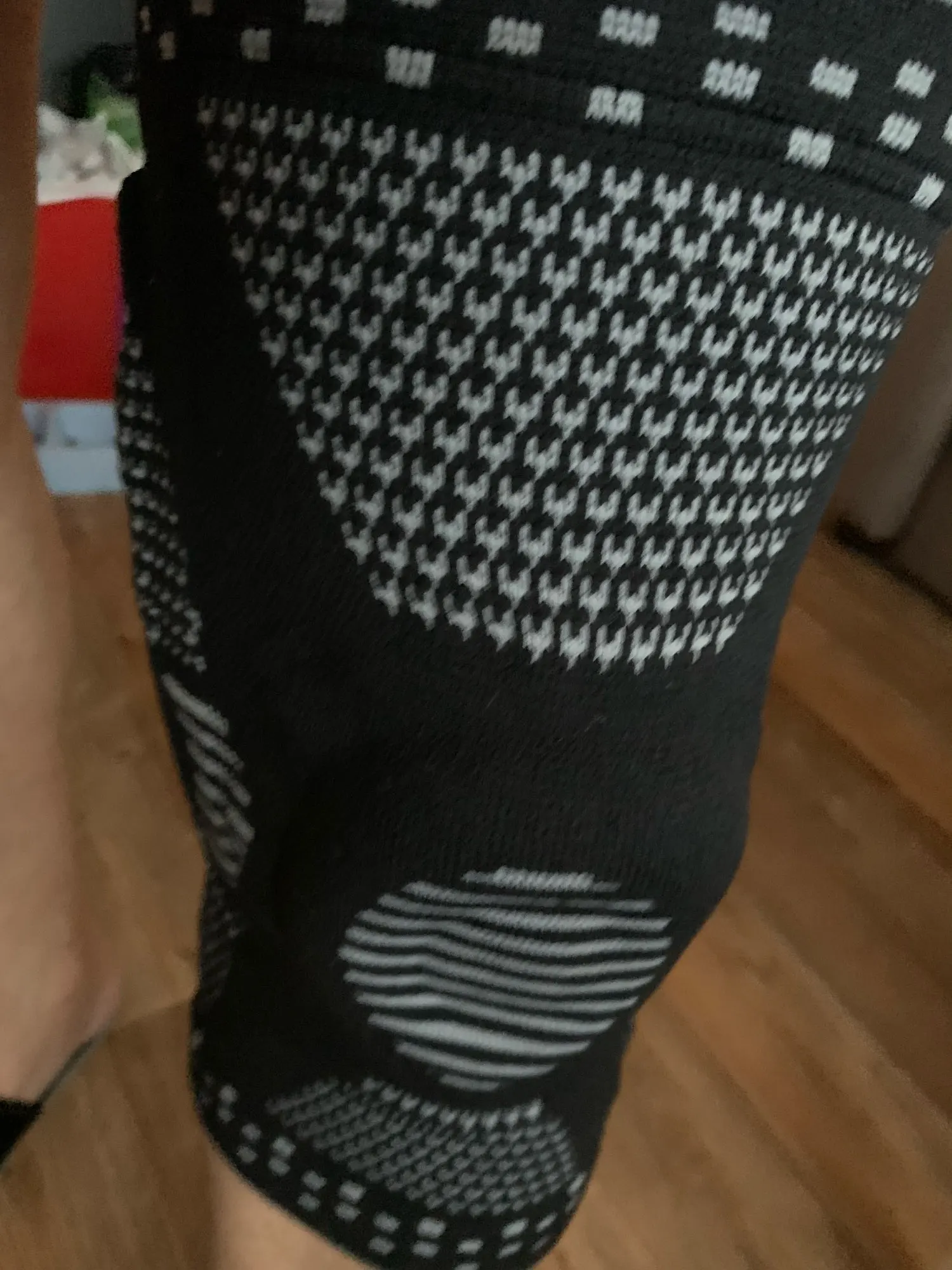 Товар продавец отправил быстро.Товар пришёл менее чем за месяц до Томской обл.(27.11-заказал,22.12-получил на почте).Качество и функционал-норм.На ноге сидит хорошо,прям и боли в коленях при вставании не ощущаются как раньше.Ношу в течении всего рабочего дня (не сползают вниз,реально суставам легче разгибаться)вечером дома снимаю.По работе(отделка) приходится вставать на колени и раньше приходилось надевать строительные наколенники, а теперь это кольцо резиновое позволяет обходиться без строительных,а если и их ещё добавить, то на коленях и танцевать можно будет как джигиту.Продавец отвечал на сообщения.Магазин,товар рекомендую.