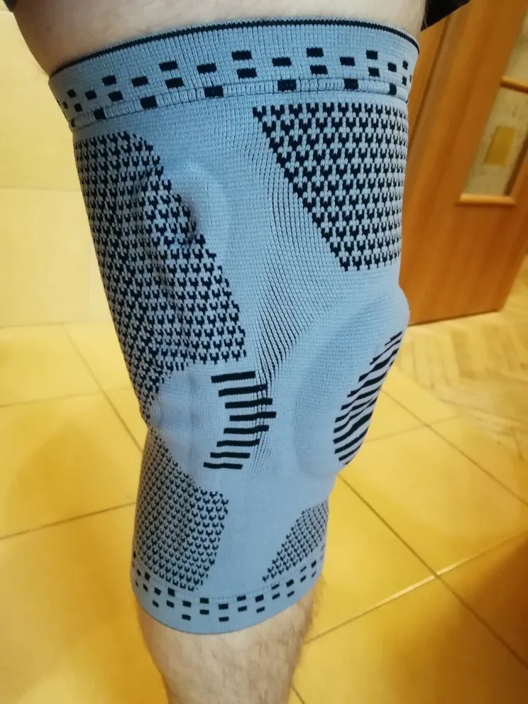 очень хороший наколенник.на обьем 42см над коленом взяла размер М,подошло отлично.надеюсь,поможет с больным коленом заниматься спортивными упражнениями.не пережимает,по верхней внутренней кромке силиконовые полоски для фиксации.
