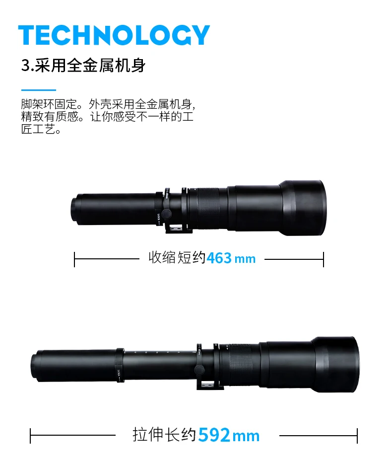 Примечание: Это объектив ручной фокусировки без функции автофокуса. Штатив и камера в комплект не входят,