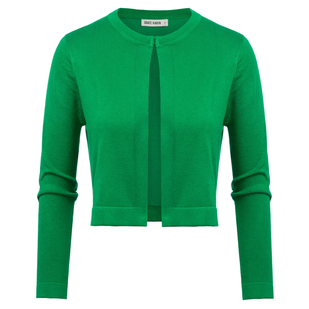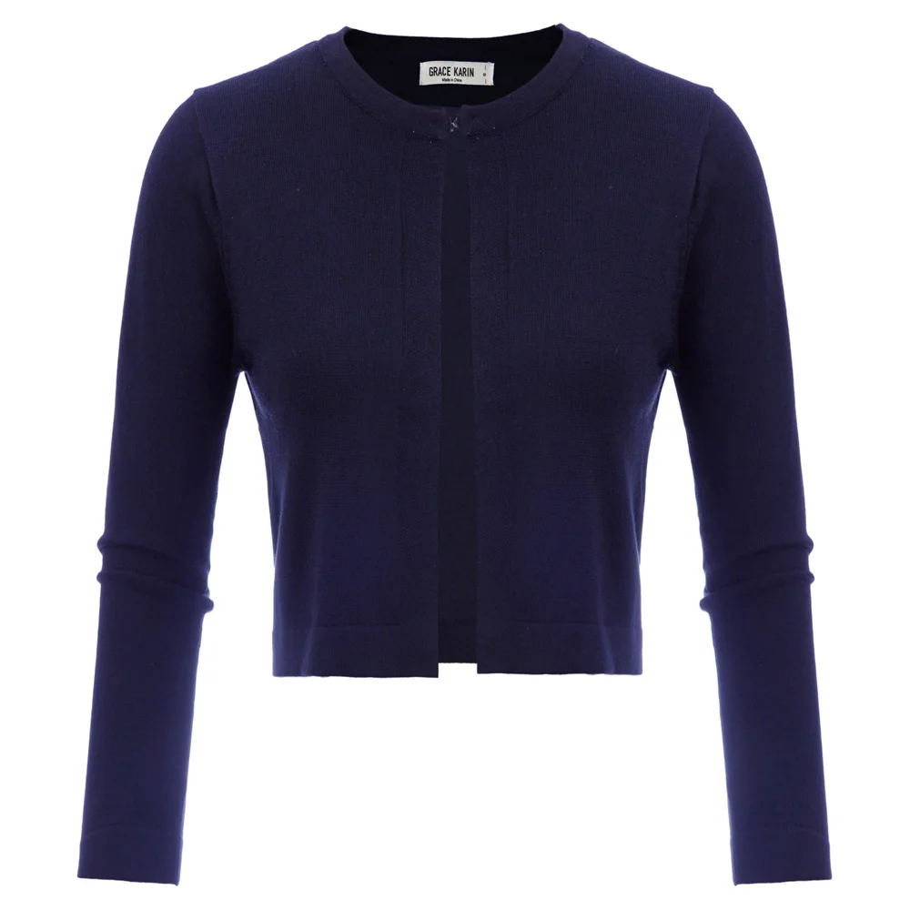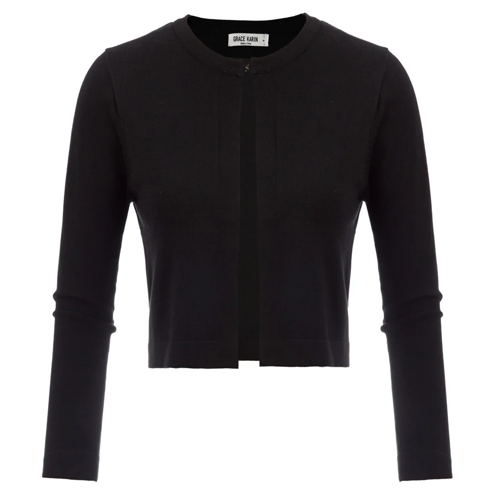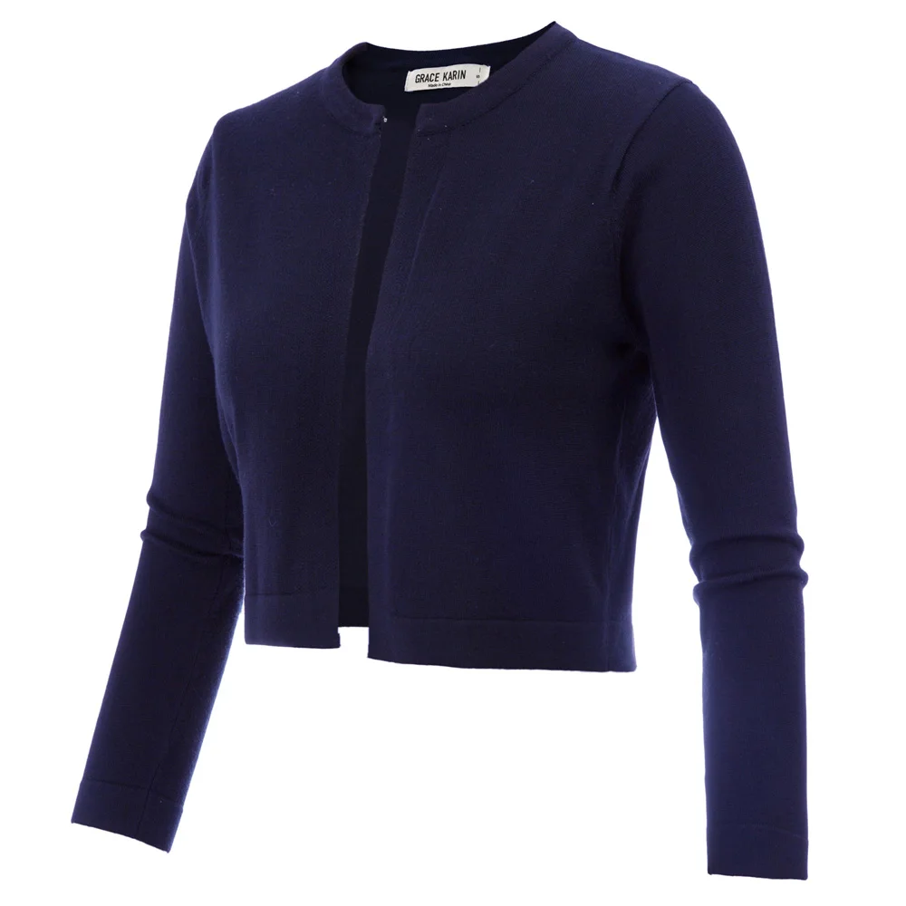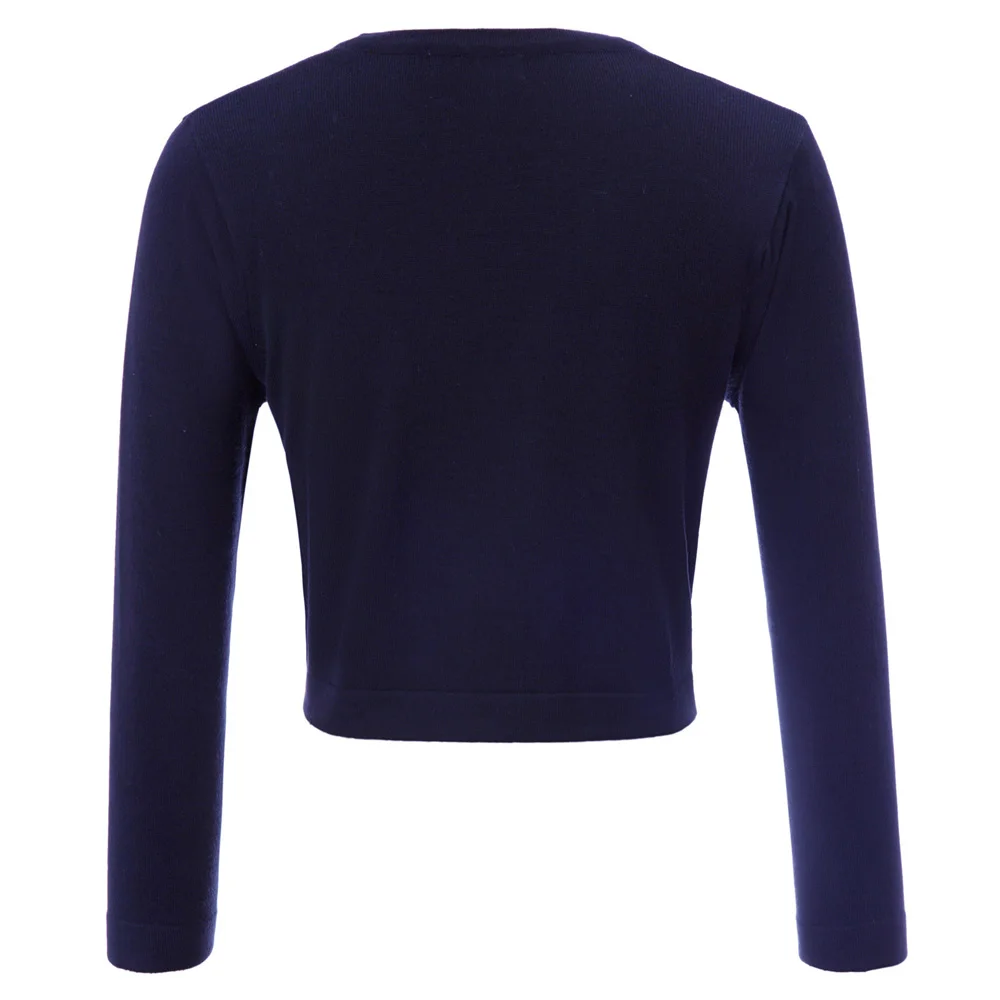 Женский трикотажный кардиган, однотонная винтажная трикотажная куртка с рукавом 34 и круглым вырезом, укороченная длина