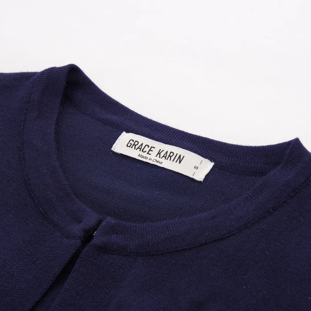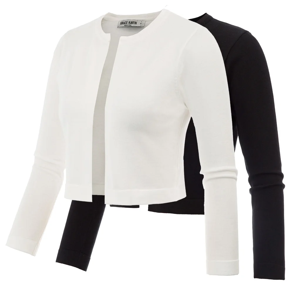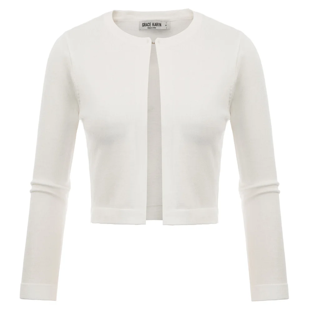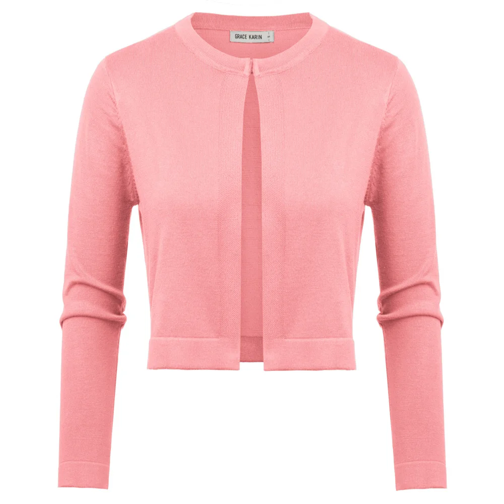 Женский трикотажный кардиган, однотонная винтажная трикотажная куртка с рукавом 34 и круглым вырезом, укороченная длина