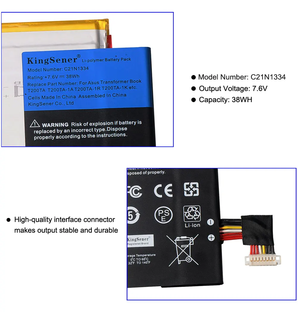 Аккумулятор Kingsener C21N1334 для ноутбука ASUS Transformer Book T200TA T200TA-1A T200TA-1K T200TA-1R 200TA-C1-BL, 7,6 В, 38 Втч