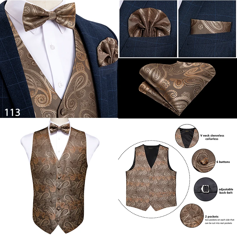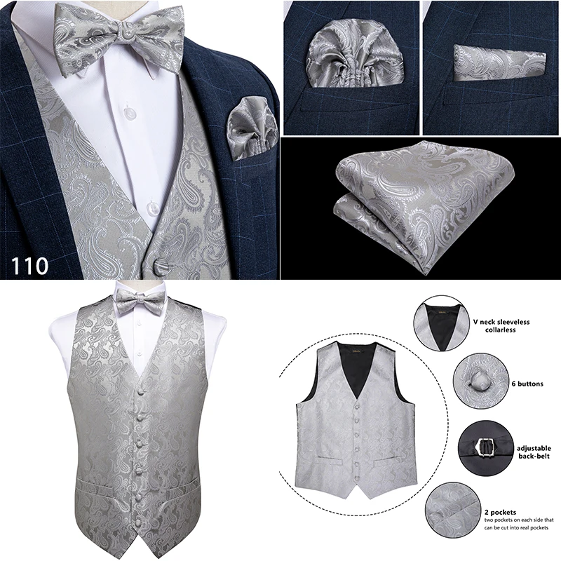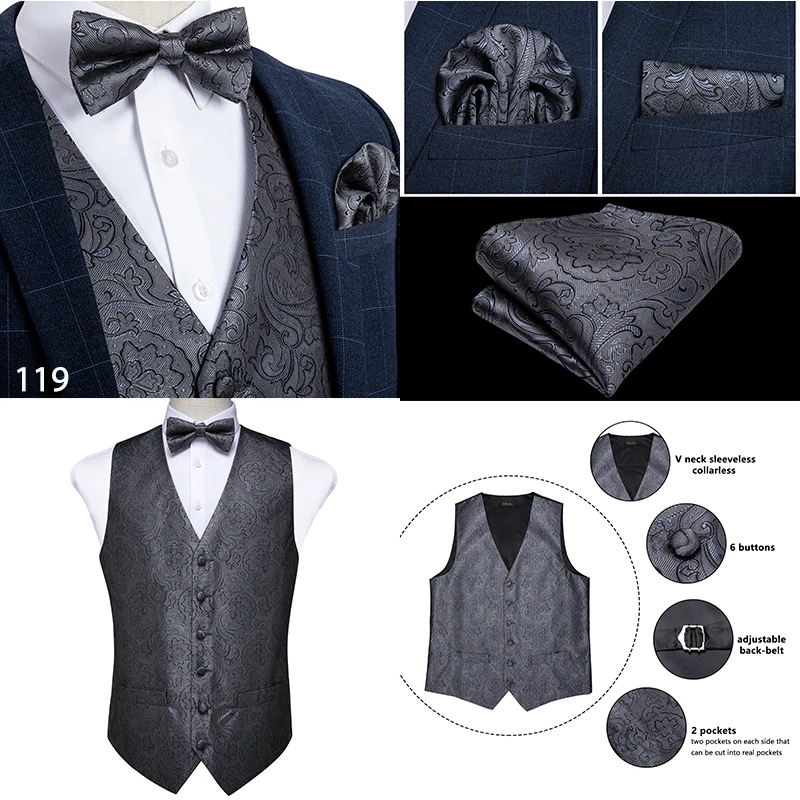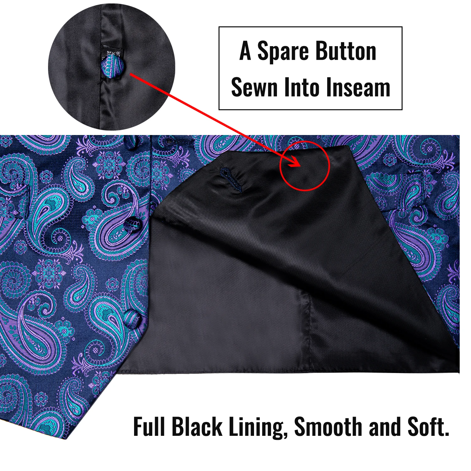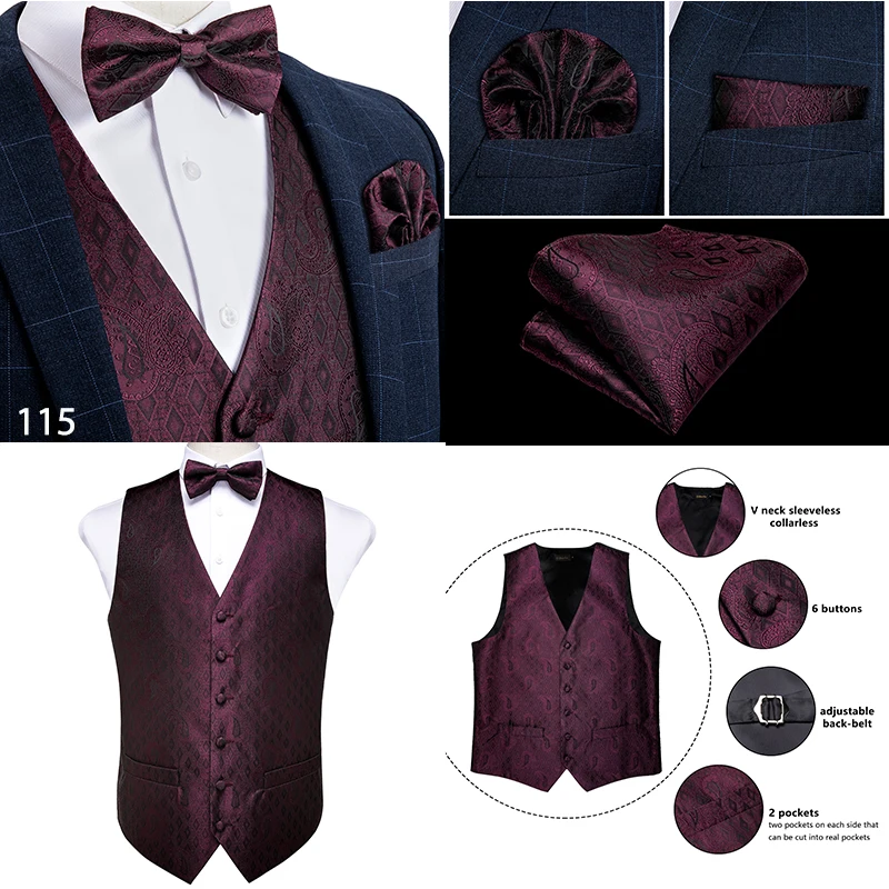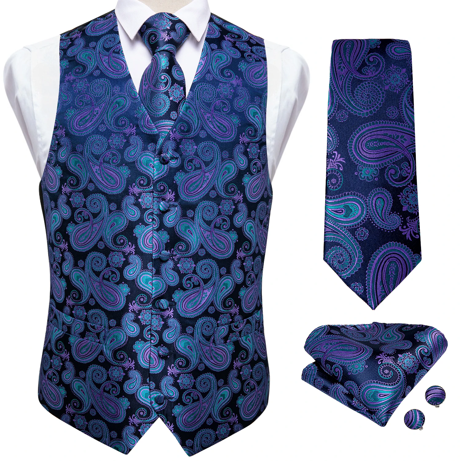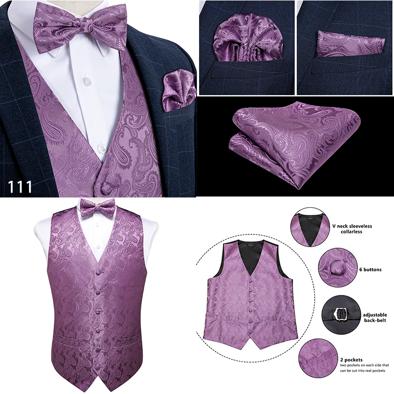 Свадебный Мужской Топ, фиолетовый, черный, 100% шелковый жилет, галстуки, платок, запонки, набор галстуков для костюма, смокинга, MJTZ-104