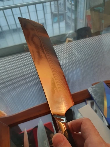 2. Премиум японская сталь-бритва острые лезвия>Импортный японский VG10 супер Сталь с 73-слой из дамасской стали Сталь-Высокая эластичность и твердость. Наш нож VG10 является антипригарным, имеет изысканный японский Летний Пляжный узор и является жидким азотным закаленным, обеспечивающим долговечность! Пятно и коррозионно-стойкое лезвие. Каждый узор лезвия отличается, уникальность делает его художественным произведением, подходящим для коллекционирования или домашнего использования.
