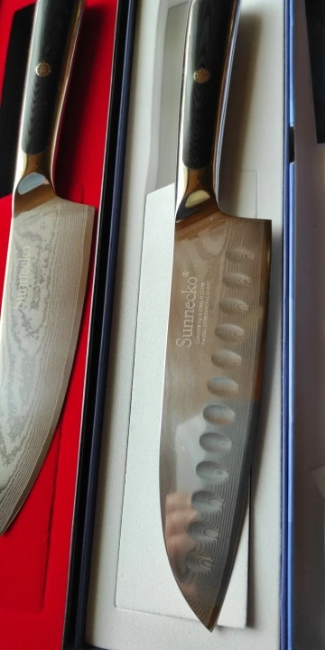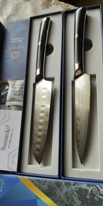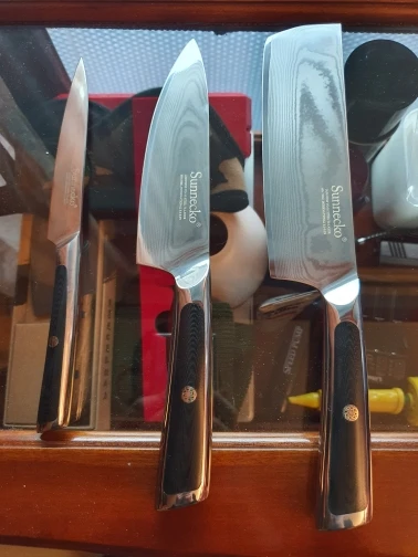 3. Потрясающая Тройная заклепка, закругленная ручка>Это то, что отличает ножи Sunnecko от соревнований-наши ручки были построены с вами в виду! Черная ручка высшего военного класса G10, тройная, приклеивается к кованому полностью Тан для дополнительной прочности и долговечности, со вкусом украшена классической металлической мозаичной заклепкой Sunnecko. Эргономичный дизайн-Закругленные ручки для обеспечения надежного и удобного захвата! Редкая коническая опора для экстремального комфорта, идеальный баланс!
