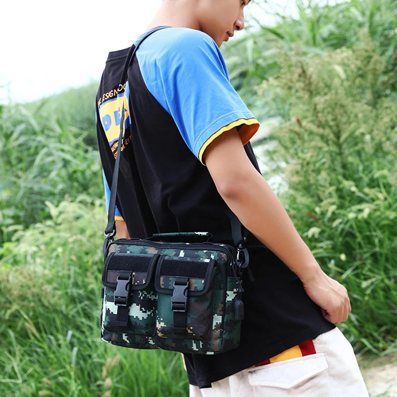 Армейская тактическая сумка через плечо с USB-зарядкой, уличная Сумка для кемпинга, походов, Военная Сумочка через плечо, камуфляжный мессенджер для рыбалки