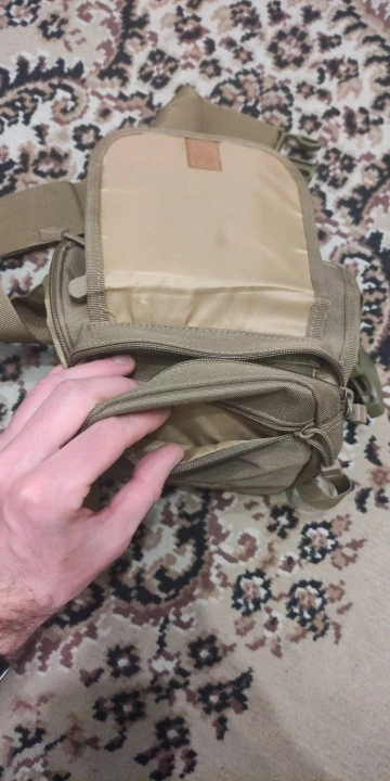 Сама сумка - отличная, кол-во и расположение карманов очень удачное, тут твердые 5 звезд. Что касательно крепление верхнего ремня и его качества - это 1. Во первых ремень очень широкий и это проблема, в ушко для ремня на брюках этот ремень не пролазит. Во вторых ремень из очень грубой ленты и пришит он не по краям сумки, а прошит через весь верх сумки. Это проблема ибо он будет тереть брюки, а значит у вас на всех штанах будут потертости сверху. Я уже проходил такое с другими сумками. Итог по ремню: Я взял ремень с прошлой сумки - там он уже раза в 1.5 и он гладкий. и перешил сюда. Также взял мягкую ткань обратной стороны с прошлой сумки и закрыл этот жесткий пояс в вверху сумки.