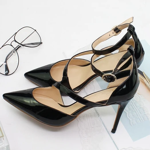 Новые летние женские туфли в римском стиле, черные босоножки пикантная обувь на высоком тонком каблуке 8,5 см пикантные туфли на высоком каблуке с острым носком; Женская обувь; Женские туфли