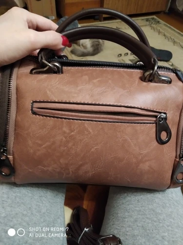 сумка пришла, но был небольшой отрыв маленького кусочка на ручке.обещали вернуть деньги. а так сумка хорошенькая, приятного цвета, форму держит