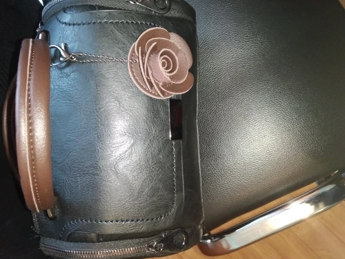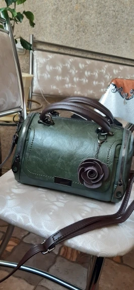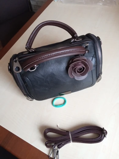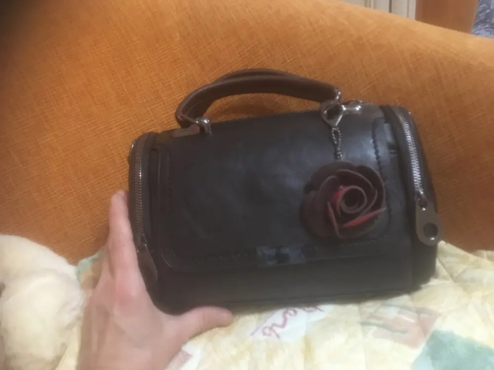 Отличная сумка! Описанию соответствует полностью. Пришла упакованная хорошо. Внутри был пакет с воздухом и длинный ремень. Кому важно: цветок полностью коричневый, в цвет ручек. Ручки недлинные: летом на локте носить можно, зимой не всем подойдёт, лучше в руках. Замки металлические (верхний и боковые). Но руки не царапают, облиты пластиком. Вместительность: - основное отделение заняли кошелек, визитница, ключница, маленькая косметичка, паспорт, зарядка для телефона, телефон (5,7"), баночка с обедом (200гр). Вышло чуть больше половины сумки. - боковые карманы удобные, глубокие, не слишком узкие. - передний карман узкий (плоский), можно положить телефон или пачку влажных салфеток. - задний карман стандартный, можно положить небольшую ключницу. - внутренние кармашки оба стандартного размера. Как видите, сумка вполне вместительная. Покупкой полностью довольна. Детали на фото.