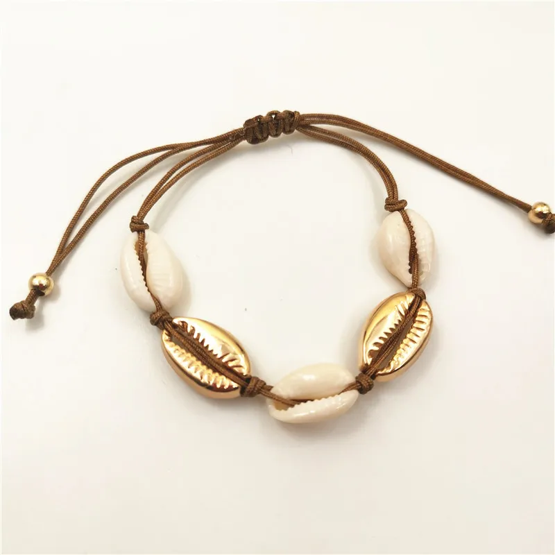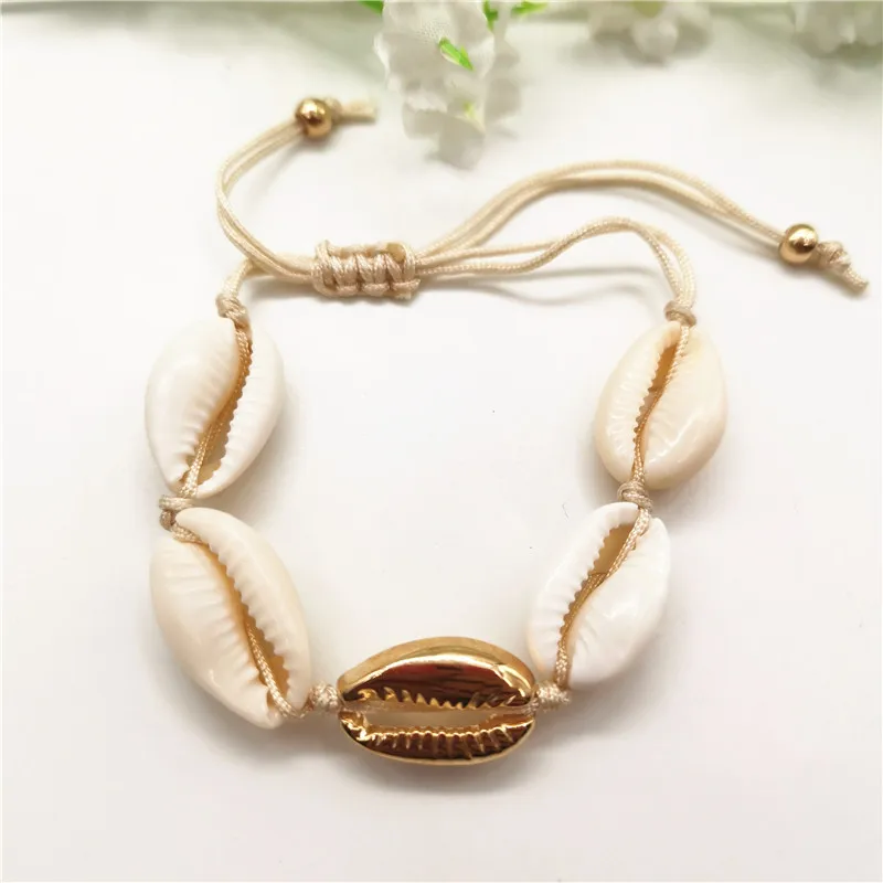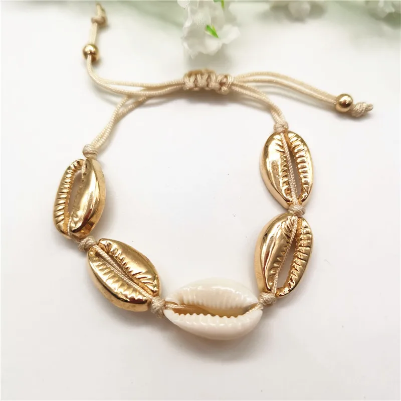 Женский браслет из ракушек Cowrie золотого цвета, изящный веревочный браслет-цепочка с бусинами, амулетный браслет, богемные пляжные украшения