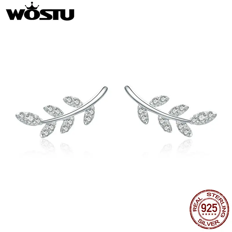Женские серьги-пусеты WOSTU, из серебра 925 пробы с цирконием, в Корейском стиле