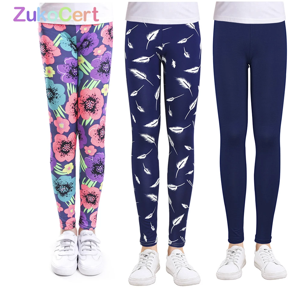 ZukoCertтонкие леггинсы для девочек с цветочным принтом, мягкие эластичные детские брюки-карандаш из полиэстера, леггинсы для девочек, одежда для маленьких девочек, детские брюки-карандаш