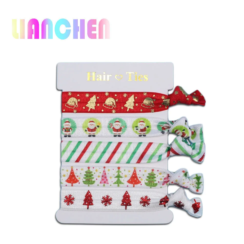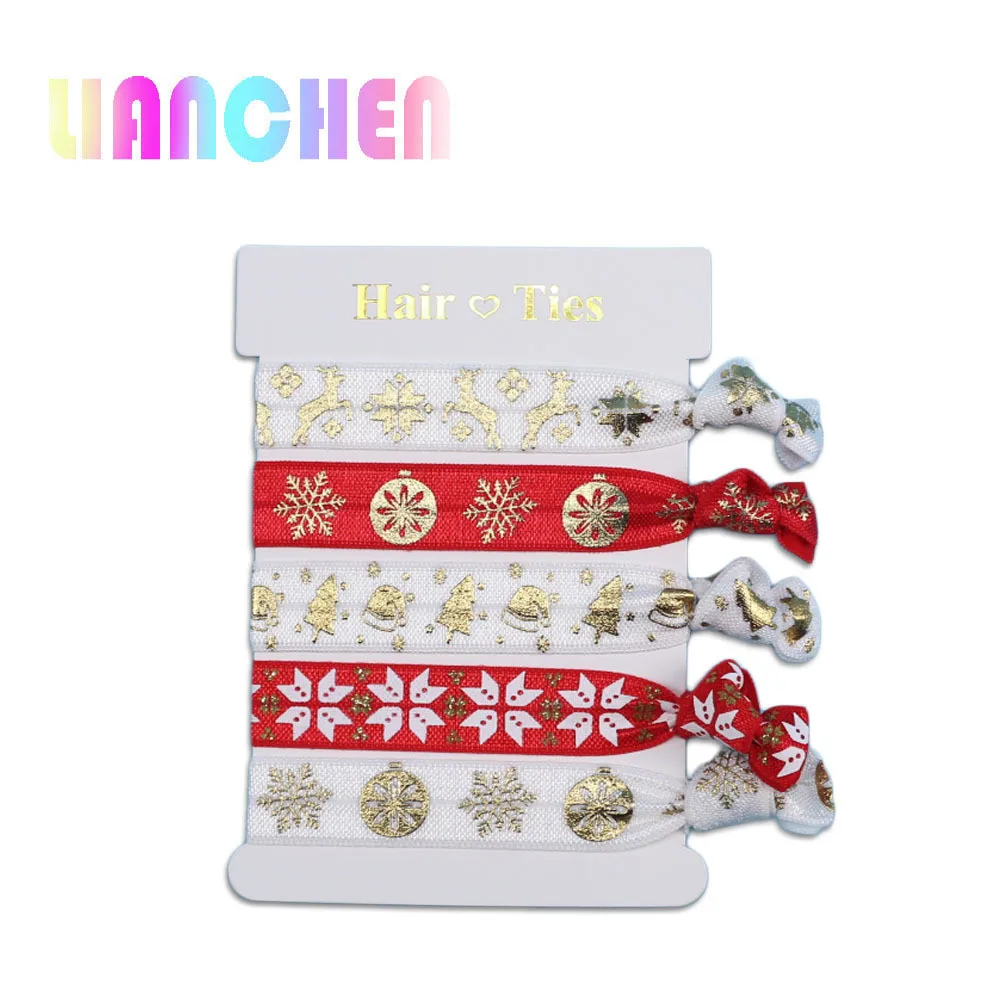 15 карт/партия, Рождественская Золотая фольга, складывается поверх эластичной ленты для волос, повязка для волос с принтом, завязанная ручная резинка для волос для девочек, головной убор