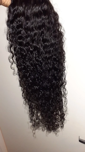Belle perruque qui a l’air de bonne qualité. Il y avait une mauvaise odeur qui partira sûrement au lavage. Je vous mettrait d’autres photo après pose et utilisation. Ah et j’ai pris du 14 pouces / 180 densité /13x4 vu qu’on peut pas toujours voir cette information. Je vous conseille de prendre 180 ou 200 de densité parce que sinon la lave ne sera pas fourni